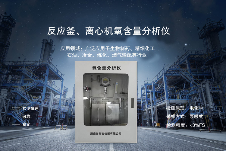 在化工、医药等行业中,反应釜氧浓度分析仪是一种常见的仪表,它实时监测反应釜中氧浓度值保证生产安全,因此如何选择氧浓度分析仪品牌厂家关乎企业生产运行与安全。湖南省拓安仪器作为专业的气体检测仪、气体在线分析生产厂家,可为各行业客户提供:反应釜氧浓度分析仪,防爆反应釜氧浓度分析仪,微量氧浓度分析仪等各类在线分析设备,并可根据客户需求进行...